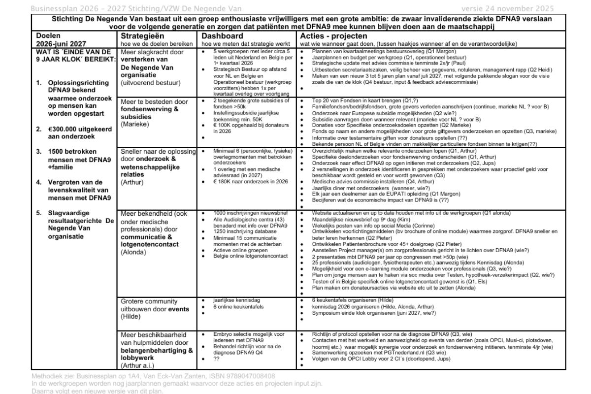 Dit plan maakt onze stichting/vzw effectiever, zichtbaarder en krachtiger — en brengt ons stap voor stap dichter bij een toekomst zónder DFNA9.